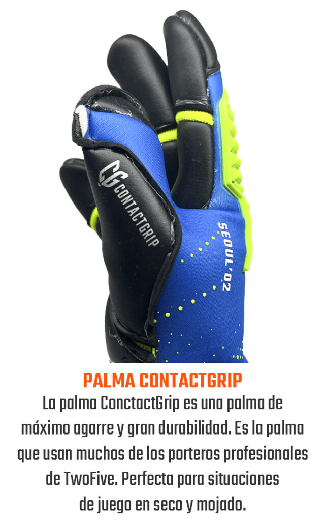 Palma de máximo rendimiento suministrada a nuestros porteros patrocinados para competir en ligas profesionales. Palma de competición con el mejor agarre en cualquier condición climática. 3.5mm látex German ContactGrip + 4mm foam. Sensación de agarre firme. Gel interno Anti-Slip para aumentar el tacto con el balón y limitar los micro-movimientos de la mano dentro del guante.